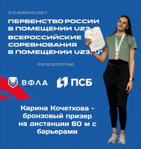 В первый день первенства Карина Кочеткова завоевала бронзовую медаль в беге на 60 метров с барьерами!